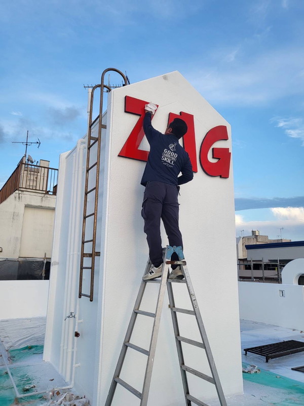 外壁塗装もお任せください。看板施工から塗装工事までを一貫して行い、美しく耐久性のある仕上がりを提供しています。経年劣化により色あせた外壁や、デザイン変更に伴う再塗装も対応いたします。